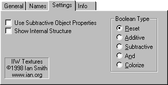 The Additive object is he next most important Boolean type. Applying this texture to an object lets Imagine know that it should cut parts out of it. This lets you accuratly specify what should or should not be affected by a Subtractive object.